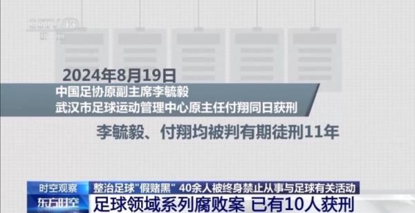 2024年8月19日,中国足协原副主席李毓毅、武汉市足球运动管理中心原主任付翔同日获刑。李毓毅、付翔均被判有期徒刑11年。