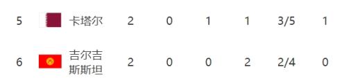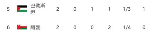 其中C组榜尾国足两连败0分,分别输给了日本和沙特。其他两个小组的最后一名,A组吉尔吉斯斯坦分别输给伊朗和乌兹别克斯坦,B组的阿曼则是连负伊拉克和韩国。